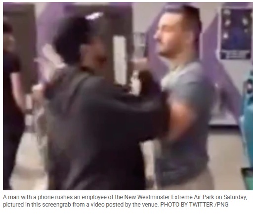 (加西網簡訊)上周末,一場兒童生日派對在新西敏Extreme Air Park蹦床樂園因蛋糕引發爭執,最終演變為肢體沖突和言語威脅,並被現場視頻記錄。