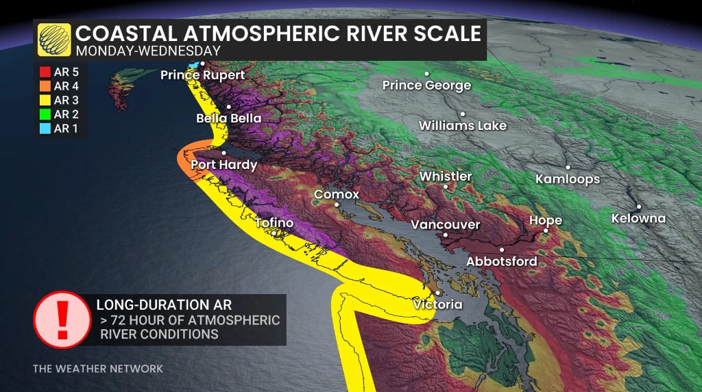 此次风暴被预估等级为AR3或AR4,强度与持续时间都非常罕见,尤其是在三月中旬。大多数大气河事件通常出现在秋季中期至初冬,而中春出现如此强烈的事件相当罕见。