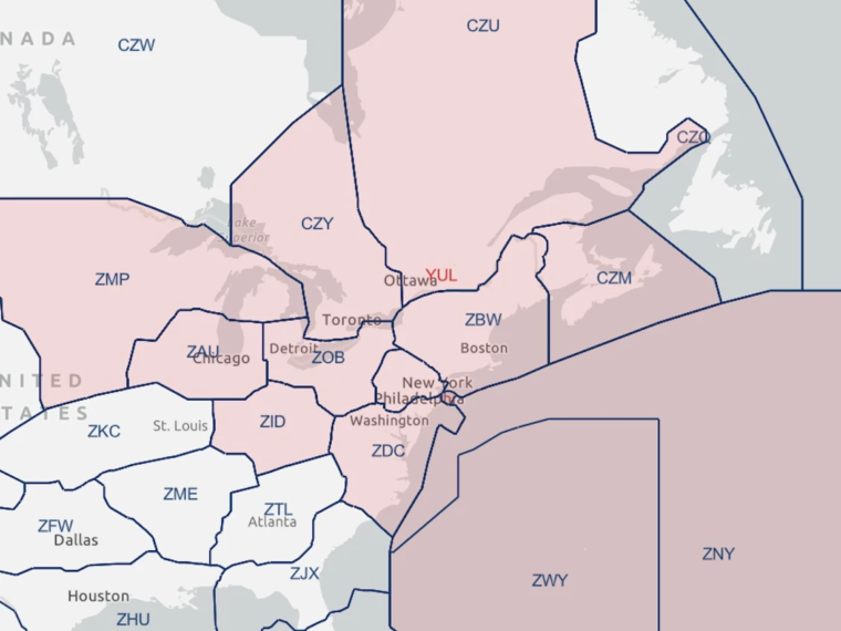 FAA表示,停飞影响了大片空域的航班,包括美国东部和中西部的大部分地区以及蒙特利尔多伦多和蒙克顿的空中交通管制区域。