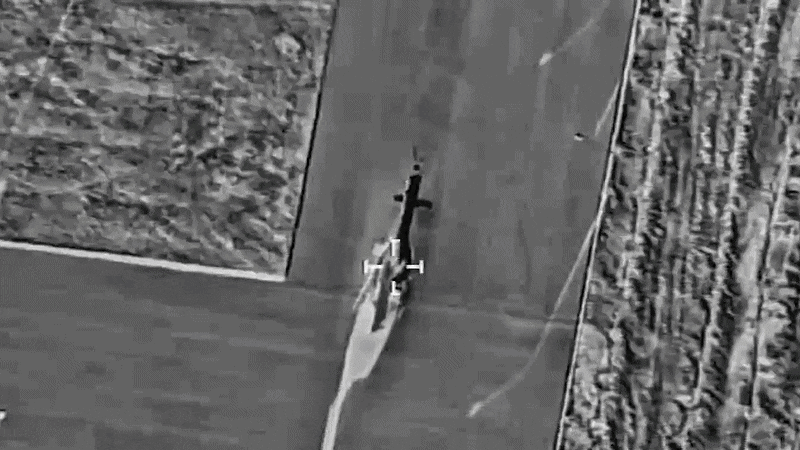 以色列国防部公开的在伊朗南部哈马丹轰炸直升机MI-17的视频。/IDF