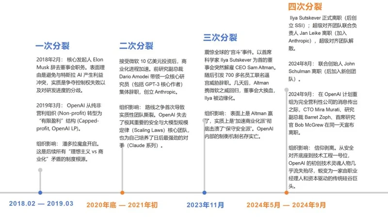 如果说当年 Anthropic 的成立是敲响了第一声警钟,那么后来 Ilya、Jan Leike 乃至 CTO Mira Murati 的出走,则是这场‘路线之争’的全面大爆发。从造物主沦为大厂,OpenAI 失去的不仅仅是几个天才大脑,而是当年那个愿意为了人类安全和极致技术而甘坐冷板凳的灵魂。