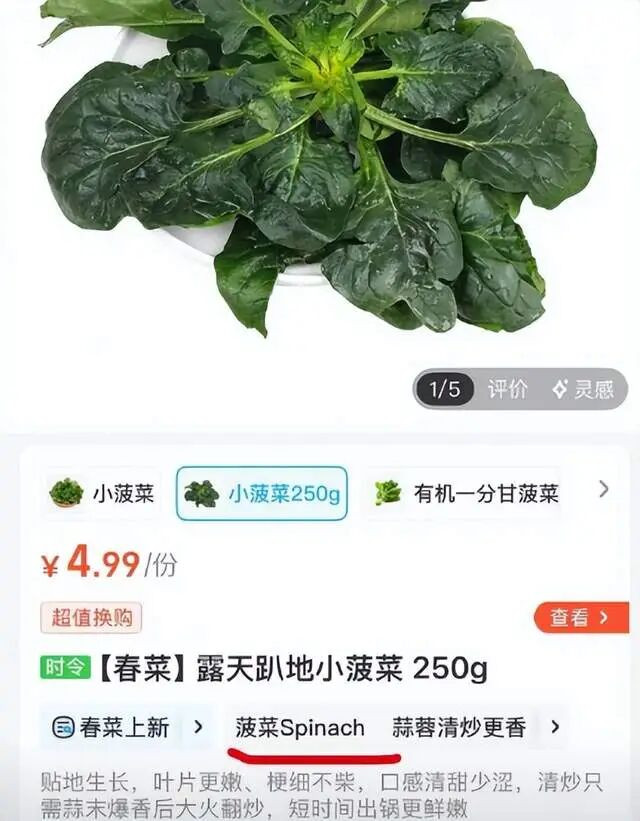 这期节目太火了,光点赞就接近100万,瞿颖自然备受关注,她的视频账号几天涨粉9万多,各大平台都在推瞿颖的搞笑切片。好多企业趁着热度蹭流量,盒马在菠菜产品介绍上加注英文标签,完成了一次借势营销。
