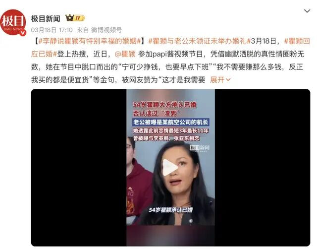 2025年4月,李静在播客中聊到“颖子现在有特别幸福的婚姻...”,瞿颖没有反驳,还透露“反正到现在我还很享受”。