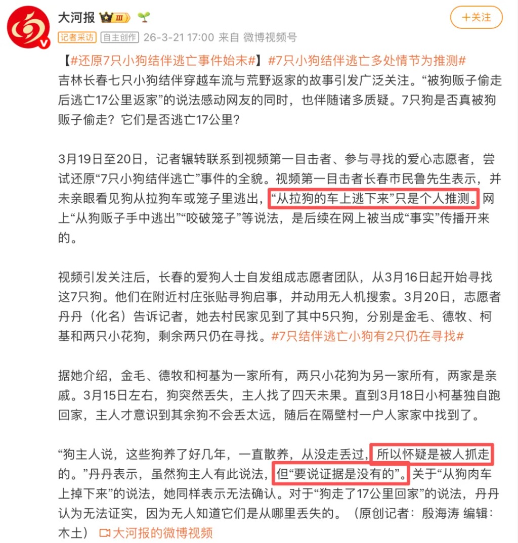 目前,這7只狗已全部安全回家。盡管故事真相不如傳言驚險,但這段“結伴歸途”的畫面,依然打動了無數網友。