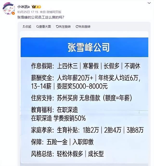 好的福利才是一个公司好的表现。这两年,网友对张雪峰的印象除了来自其口才之外,剩下的便是其公司过年的福利,人家顶多半个月的假期,而他却为员工放假了22天之多。