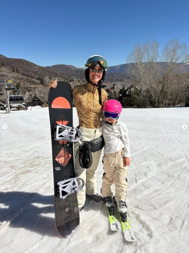 除了這張引發熱議的合影,整組照片更多記錄的是水果姐與5歲女兒Daisy的溫馨滑雪之旅。畫面中,她帶著女兒在雪道上玩雪、搭乘纜車,還曬出了印有女兒名字的童靴等生活細節,盡顯母愛一面。此外,她還分享了一些趣味照片與情感類段子,為整組內容增添輕松氛圍。