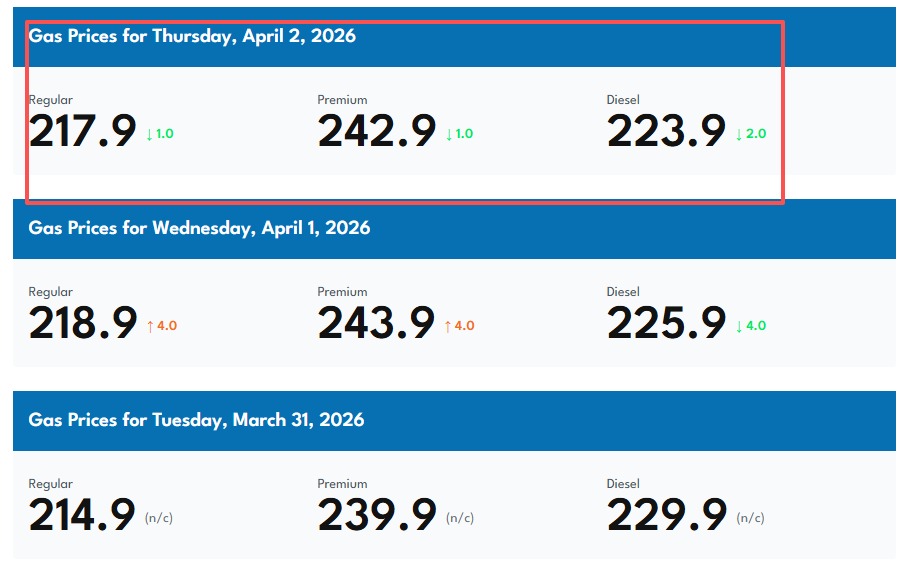 根據網站affordableenergy.ca的油價預測,明天溫哥華的油價可能下跌1分,穩在217.9元。