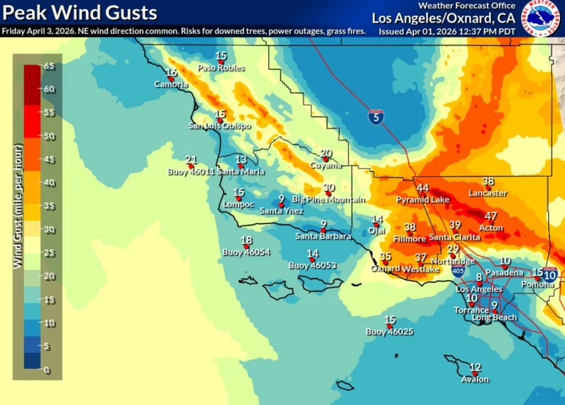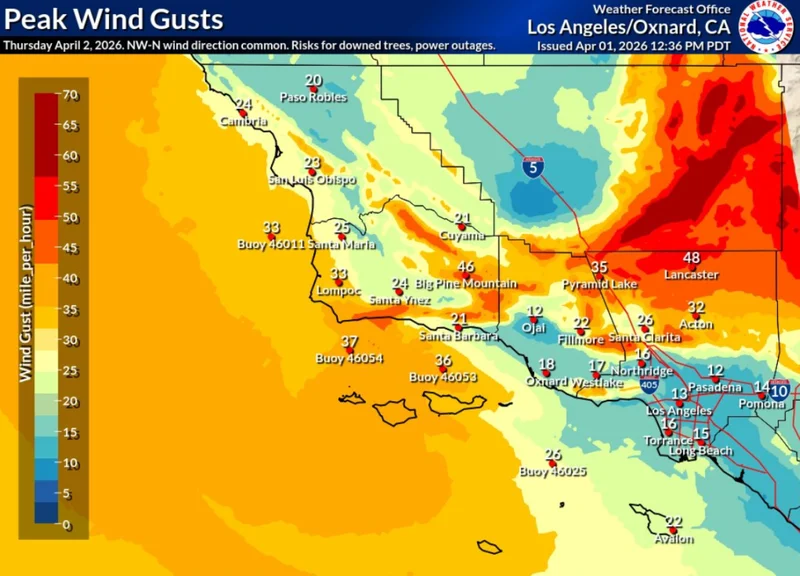 預報顯示,該地區將遭遇持續西風,風速達每小時25至35英裡,陣風峰值更可達每小時60英裡。