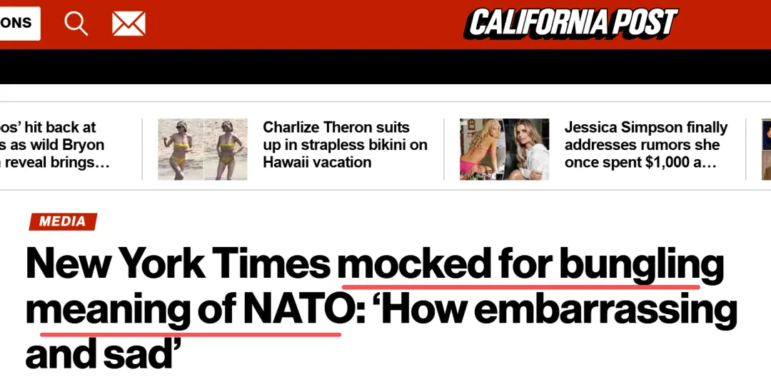 纽约时报》搞错北约(NATO)含义遭嘲讽:“多么尴尬,多么可悲”