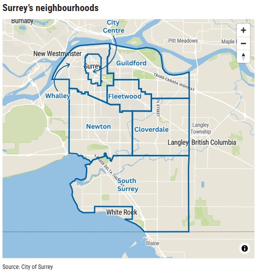 相比之下,北素里市中心地区租房比例高达55%,平均收入约$77,200,51%为移民居民,32%依靠公共交通通勤。Guildford和Newton则分别成为低收入租户和南亚加拿大人社区聚集地。