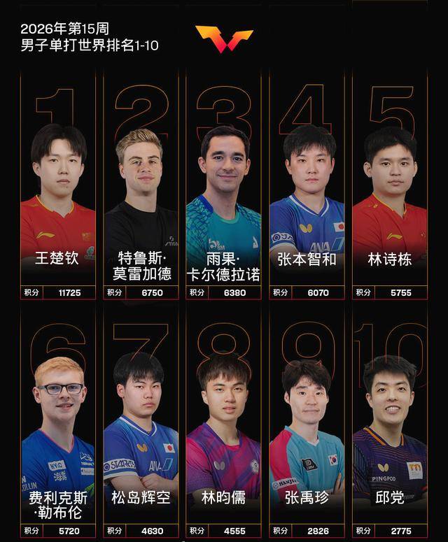 然而,胜利的香槟还没有来得及开启,欢庆的掌声还没有来得及落下,不到24小时,世界乒联公布的最新世界排名便如一盆冷水,浇在了所有中国乒乓球迷的心头:2026年第15周的世界排名,男子单打前十名中,中国队仅剩王楚钦与林诗栋两名球员。