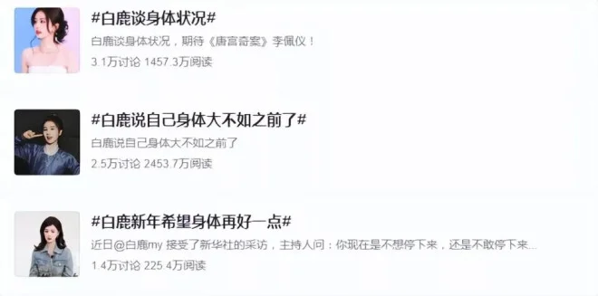 而去年下半年,因拍摄新剧《莫离》而陷入“疑难杂症”中的白鹿,目前身体状况已经稳定。