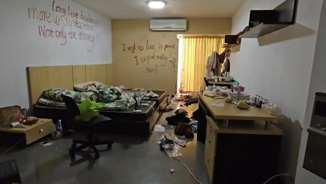 現場環境極其慘烈。最令人不寒而栗的是,房間的四面牆壁及浴室內,均被凶徒用鮮血寫下充滿絕望語氣的英文遺言:“理解比金錢更重要”、“我曾經過著平靜的生活,我盡了全力”。