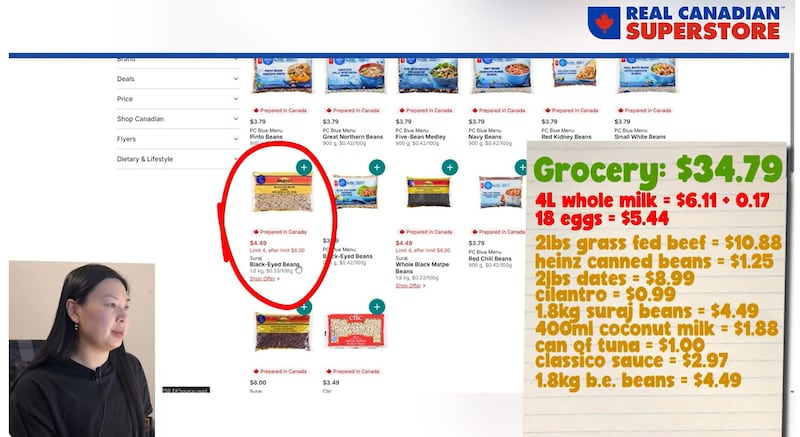 米歇爾·尼傑達姆在她的YouTube頻道上翻閱傳單,並列出購物清單。(CTV新聞)