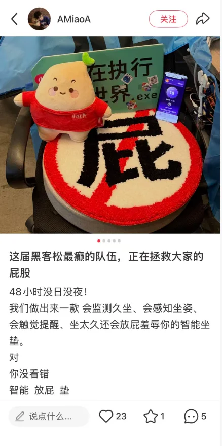 拯救辦公室的屁股們的健康,是一個迫在眉睫的實用需求。這款智能放屁墊,會監測久坐、會感知坐姿、會觸覺提醒、坐太久還會放出屁聲羞辱你。畢竟“屁股是人的第二大腦”,對AI人來說,關愛兩個大腦同等重要。