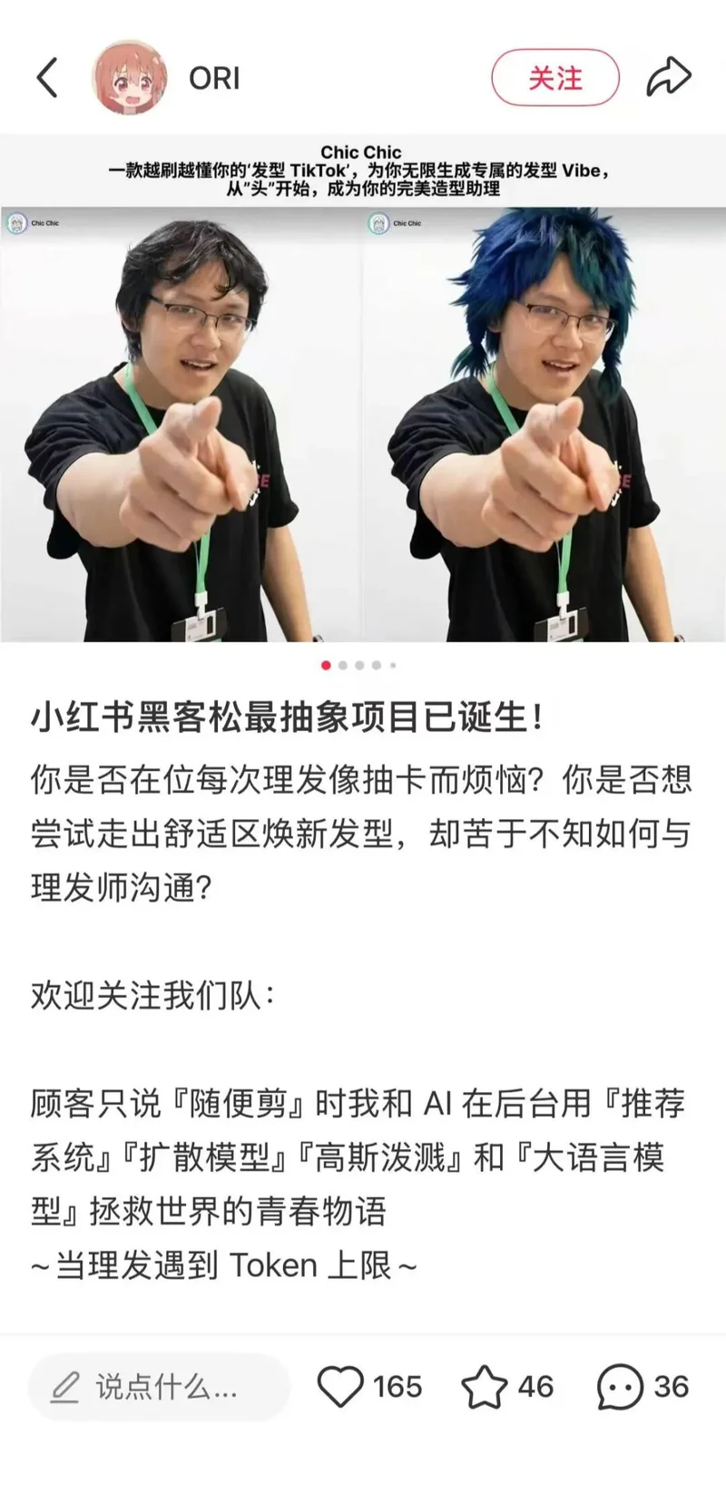 在創意以外,“實用”與“效率”也是黑客松巔峰賽出品的產品的底色。理發店裡的Tony老師永遠聽不懂什麼叫“稍微修一下”。但這次黑客松軟件賽道的冠軍項目“Chic Chic”,直接用高斯重建技術把這事兒給暴力破解了。
