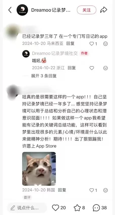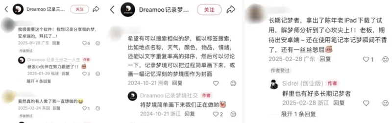 他們在小紅書發了最初的調研帖,沒投流,卻炸出了二三十萬瀏覽量、幾千個互動。有人反饋自己每天記錄夢境,但沒有好用的工具,甚至還有人去小說網站開號記錄夢境,孫東來意識到,這的確是一個被忽視的需求。