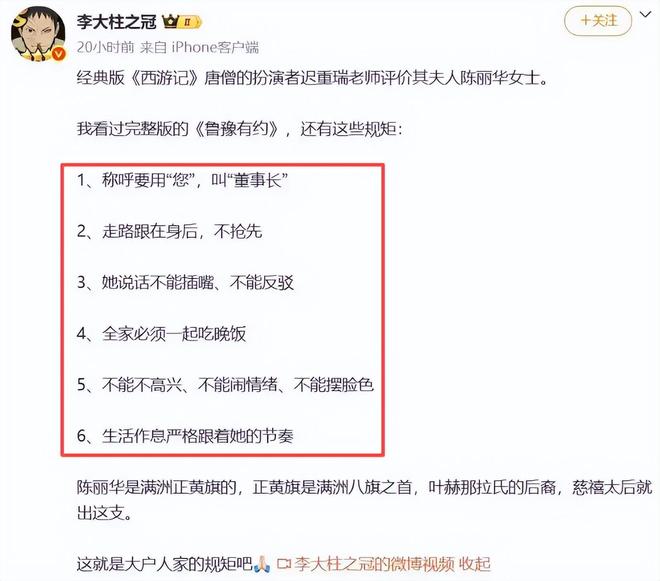 有人完整看完了《魯豫有約》關於陳麗華、遲重瑞的那期節目,羅列出了六大規矩。