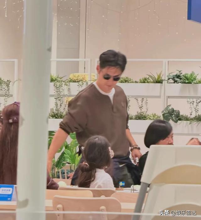 在4月12日的下午時分,有一位十分運氣好的網友於上海寶山的宜家家居那兒捕捉到了嚴屹寬的身影,他身著一件呈現咖色相的兩件套樣式的上衣,臉部帶上了酷酷風格的墨鏡,正以極為自然的狀態伸手去拉開板凳進而想要坐下。