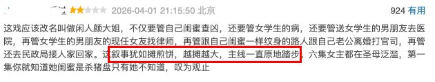 這些案例雖然呈現了PUA的普遍性和多樣形態,完成了創作初衷,但也導致一些問題,比如最為致命的,無法迅速抓住屏幕外觀眾的注意力,內容質量也出現了不同口碑的評價。
