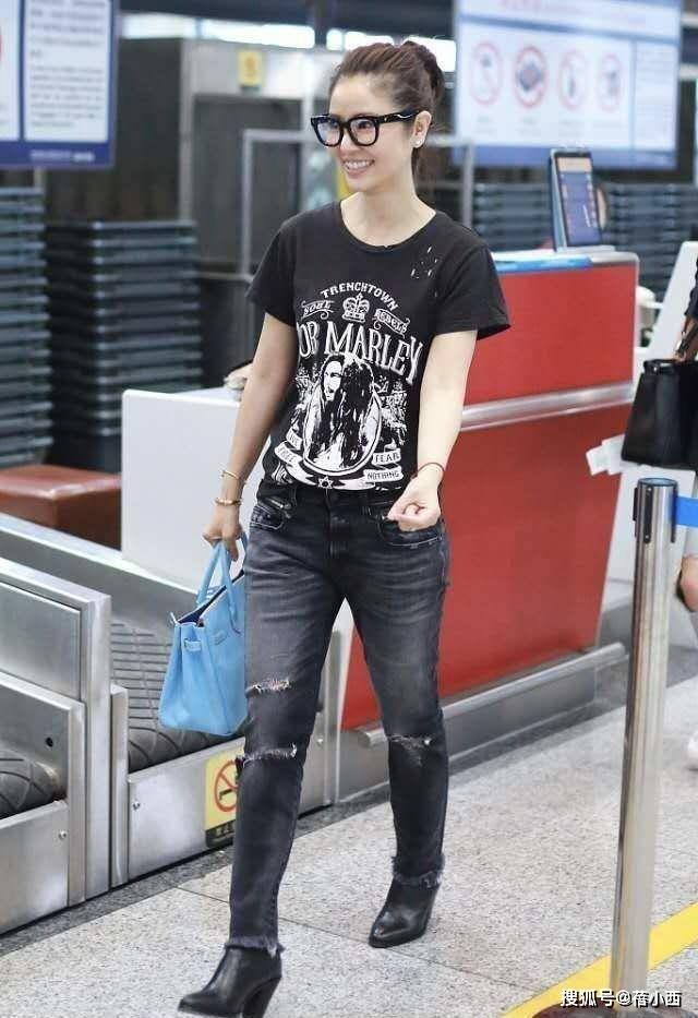 林心如: 50岁"林心如"增肥后更好看,穿黑色T恤+破洞裤