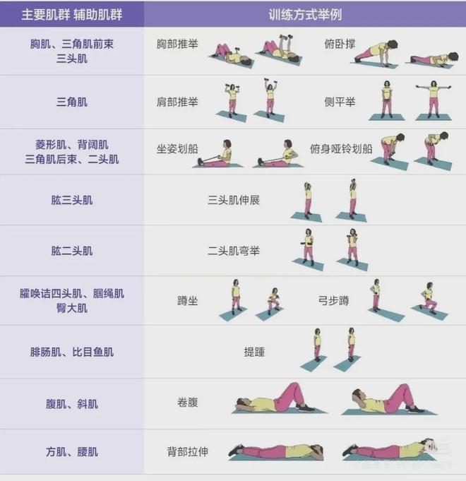 以重復的動作為主,深蹲、硬拉、臥推、卷腹、推舉這類動作能同時調動多個大肌群,效率最高。
