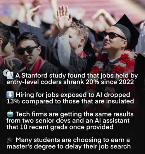 斯坦福大学软件工程学位曾经是黄金专业。最近的毕业生表示,人工智能已将其贬值至青铜。