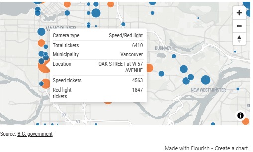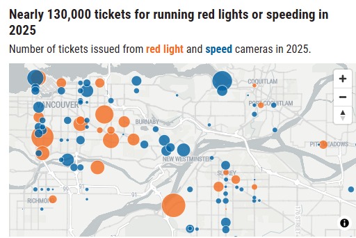 (加西网综合)去年,BC省有超过12.8万名驾驶者因超速或闯红灯被交通摄像头记录并开出罚单。一名当地公共卫生官员表示,这类系统不仅应继续存在,还应进一步扩大,因为“确实能挽救生命”。