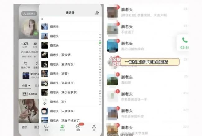 这里的老头不是真老头,而是90后甚至95后男性。“崩老头”是什么意思呢?就是一些05后、10后的精神小妹,在网上或大街上疯狂添加30来岁的男性为好友,搞暧昧、聊骚、发私密照,以此换取小额红包。