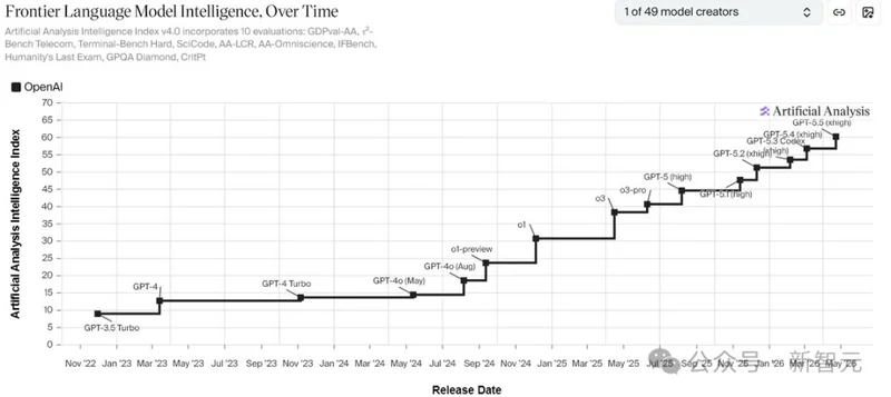 OpenAI正以快速、穩健的步伐持續推出新模型,在Artificial Analysis智能指數上穩步前行。