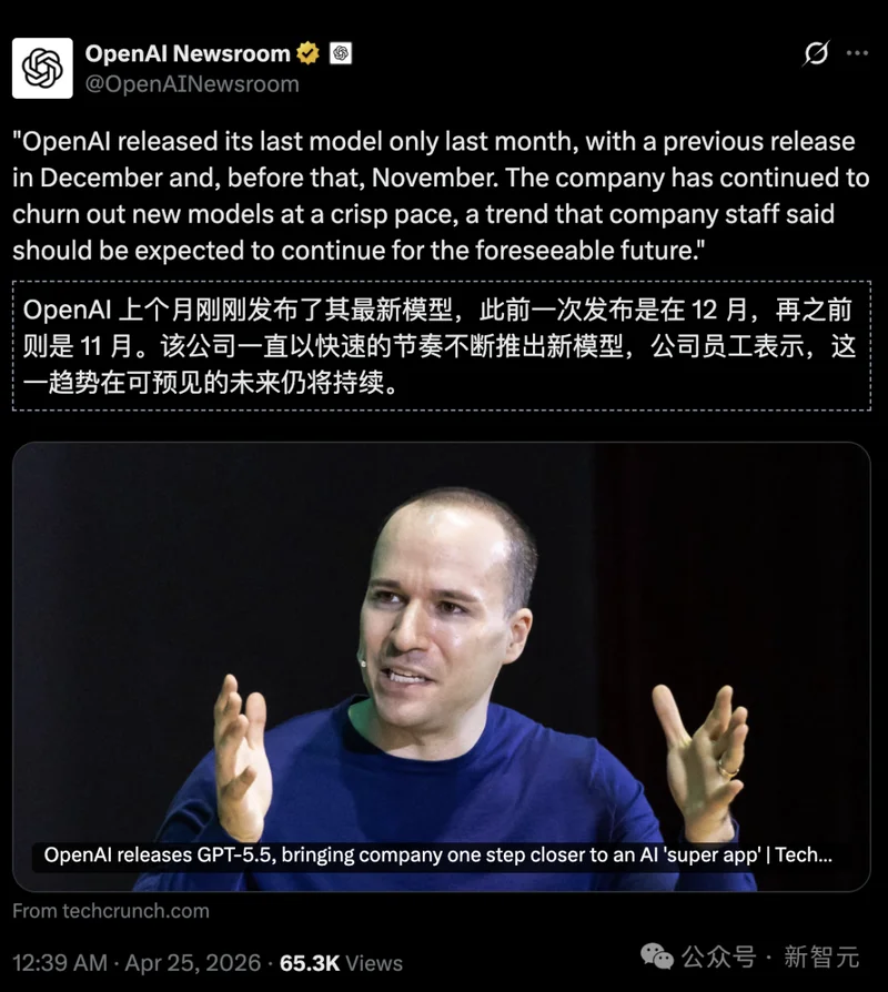 上個月,OpenAI 才剛剛發布了一個模型,再之前是去年12月,以及去年11月。
