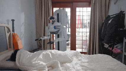 視頻裡,一台人形機器人正在蘇州一戶普通人家“打工”。清晨叫主人起床,幫忙疊好被子,榨豆漿,煎雞蛋,送主人出門,收拾房間,刷馬桶,洗衣服……