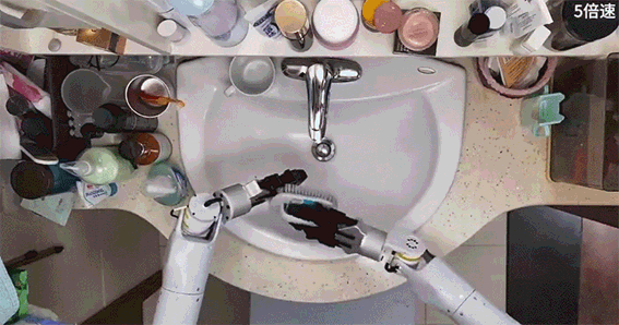 最令人驚歎的一幕是:它在刷完馬桶之後,默默走到洗手台,把機械手仔仔細細清洗一遍再擦幹。