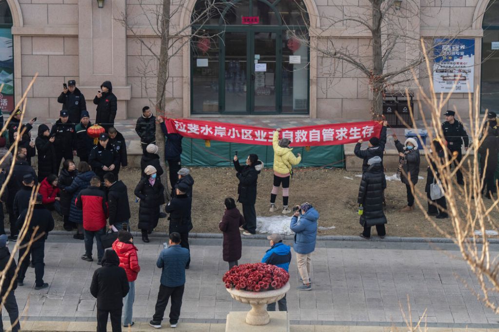 中国,即使是围绕物业管理这样平凡的事情进行组织也存在风险,因为集体行动受到严密监控。警察和保安站在附近密切注视着。在某个时刻,警方带走了一名业主。