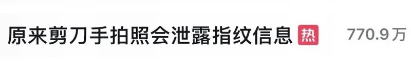 節目中,金融專家李暢指出,拍照時擺出剪刀手、清晰露出指紋,可能會導致個人信息泄露。1.5米以內的拍照,如果手是完全對著鏡頭的話,可以100%提取手部信息。1.5米到3米可以提取50%,3米以上才基本上不太能識別到手部的信息。