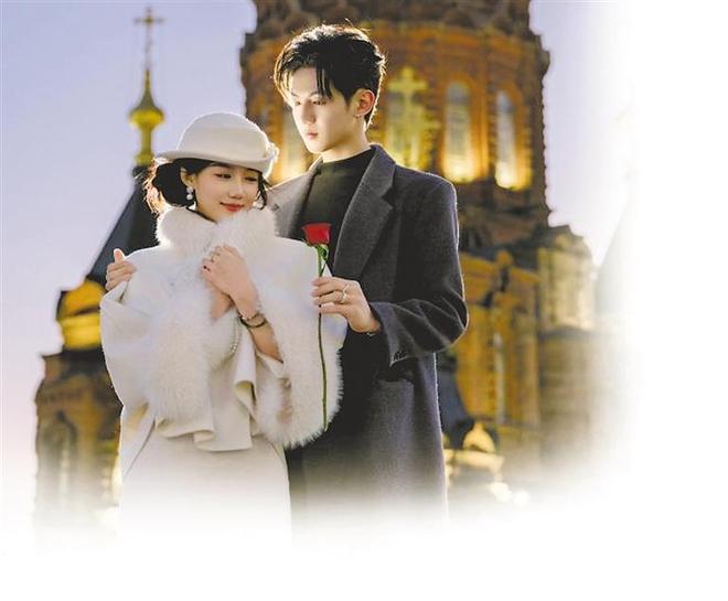 主演梁雯晶和业文Kevin在索菲亚广场前拍摄宣传片