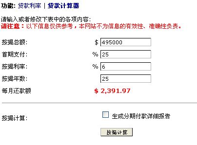 另外,房屋中心现新增加房屋多图显示功能(参见下面图2),最新贷款利率表(参加下面图3)以及贷款计算器(参见下面图4)等功能。