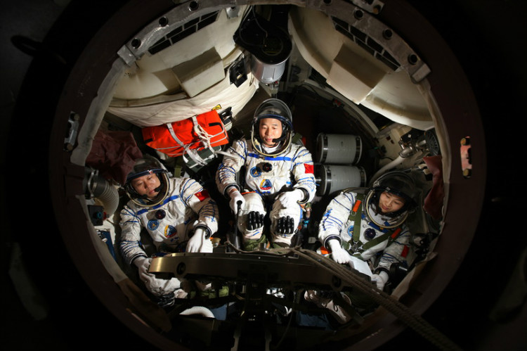 在工作中他们一丝不苟,勤于训练,冷着沉静,思维缜密。在朱九通的记忆中,航天员们心里素质可不简单,心态特别好,最简单的例子是碰到各类考试,从脸部看不出他们有任何变化。朱久通认为,正因为如此,三位航天员在临近出征时的身体检查中,一切指标和平时没有任何变化。航天员训练非常辛苦,为了模拟太空化境,航天员会在沙漠中、水中、野外等训练。由于“神九”将会进行我国航天史上首次手工操作交会对接任务,三名航天员需要模拟在失重状态下进行操控。“这好比 ‘太空穿针’!”朱九通说,三位航天员每一位单这一个项目训练就都超过了1000多次,每一次都是严谨认真。也正是由于平日这种严谨训练,我们才能看到他们三人在“神九”第一天生活状态良好,各项操作井然有序,娴熟自然。