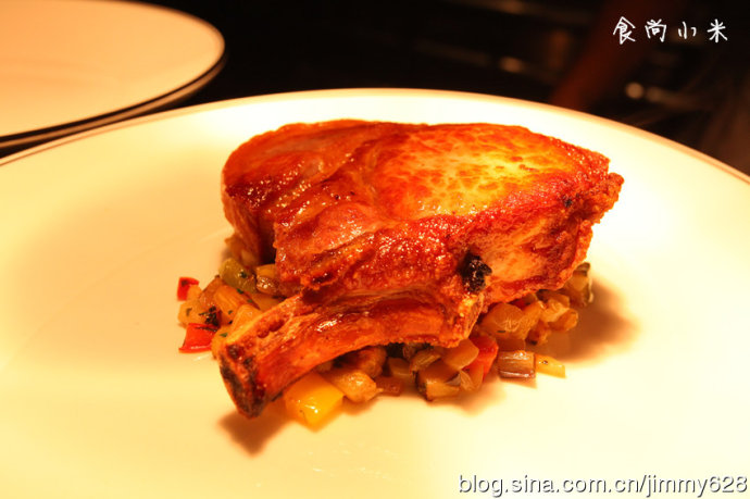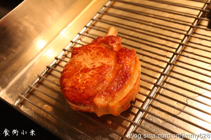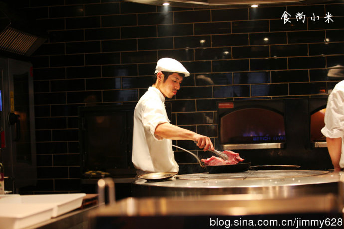 厨师长说只有这么大块450克厚的牛扒才能经过烘烤几种手段将肉汁缝在之中而表皮焦香