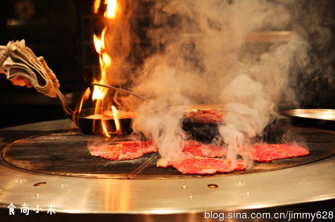 烟熏火燎的场景就在我们桌子的不远处,新鲜食材发出的滋滋声响刺激吧