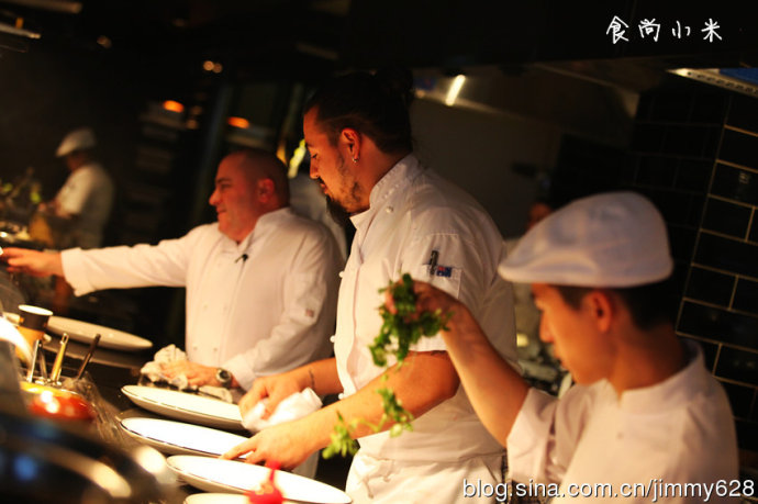 每个大厨都像是表演一样开放厨房里忙和着