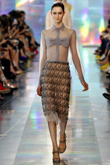 Christopher总是能给我们带来新的制造工艺,果冻模压橡胶弓给这条裙子添加结构感,这是这个系列的主题。