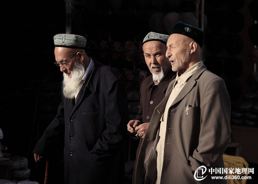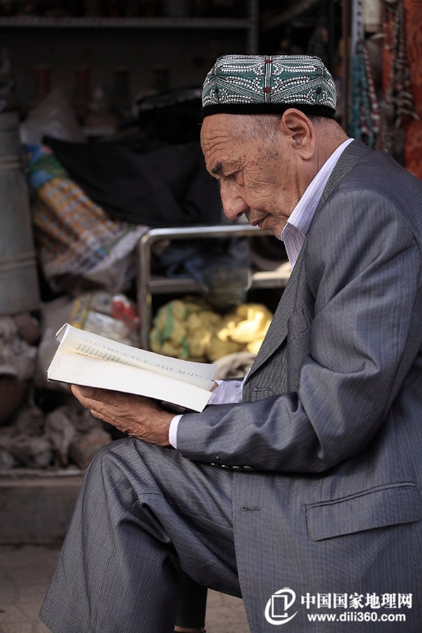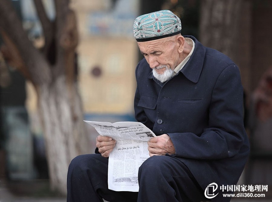 喀什的老人很平和,日常读报是他们的乐趣之一。