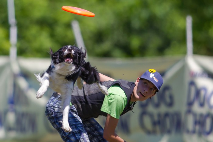 狗狗们在比赛中大显身手,上演了一幕幕接飞盘的精彩瞬间。