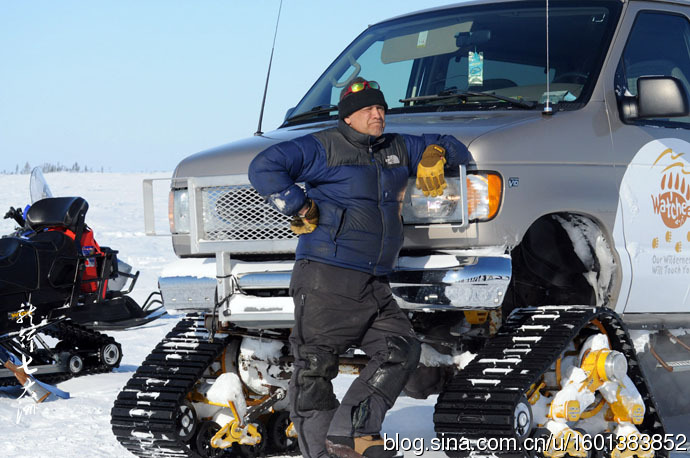 营地的工作人员们,他们要在每天出发前骑着雪地摩托车去寻找北极熊