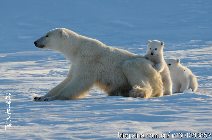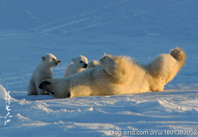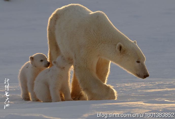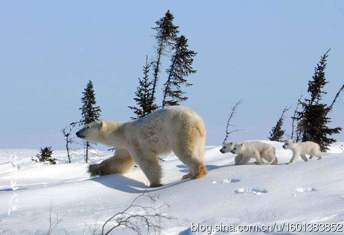 加拿大北部的小镇--丘吉尔,靠近哈德森湾,每年秋季北极熊来这里交配,冬眠并产下小熊,开春,熊妈妈带着小熊走出冬眠的洞穴,奔向就近的哈德森湾,开始他们新的生活。