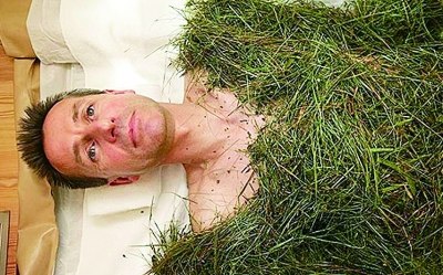 美容者身上盖满干草时,你会感觉到扎扎的、热热的。一般情况下,干草里会掺杂各种药草,包裹你的整个身体,温度会达到40度左右。