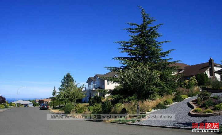 这是一个与温哥华隔海相望的一个村庄,距离约50公里。几万幢房屋,依山傍水,起伏在海拔10-100米的丘坡上。。。。。
