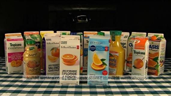 只要是看电视的人,都很熟悉橙汁广告。那些号称每一盒等于多少个新鲜橙子的鲜榨“优质橙汁”尤其受加拿大消费者欢迎。据统计,加拿大人每年花在橙汁上的钱将近5亿加元。很多人宁愿多花点钱买有“premium”字样的鲜榨橙汁。但是加拿大广播公司英法语部联合进行的一项调查表明,这类橙汁的加工过程和储存时间使它并不像广告所说的那么天然。