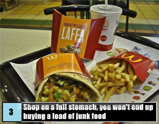 吃饱后去购物,这样你就不会买一大堆垃圾食品。